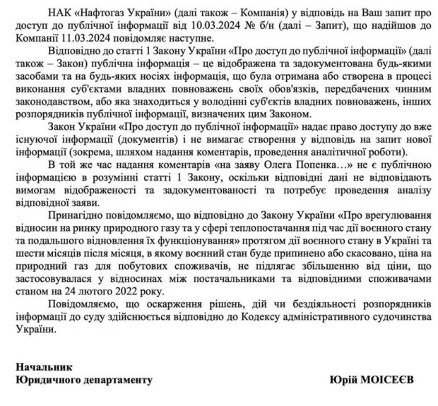 Крім цього, Нафтогаз не надав інформації щодо можливого підвищення цін для промислових споживачів природного газу, що залишило населення невпевненим у майбутніх змінах в оплаті газу.