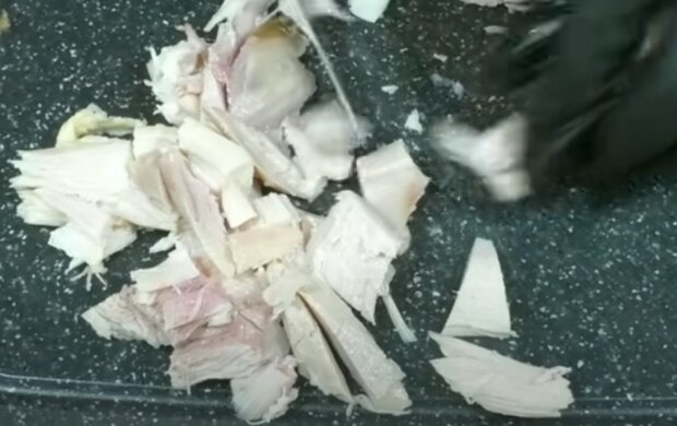 Щоб куряче філе в салаті було м'яким і соковитим, необхідно варити виключно охолоджене м'ясо, а не таке, яке було попередньо заморожене.