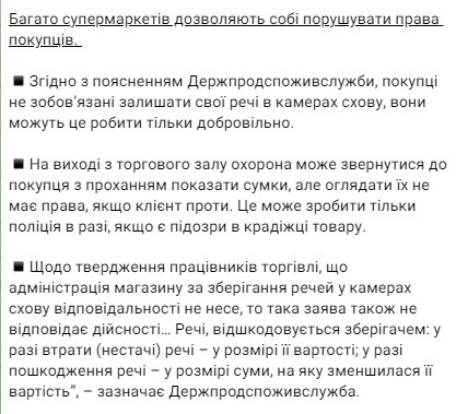 Насамперед споживачі не зобов'язані залишати свої речі у камерах зберігання у супермаркетах. Вони можуть зробити це добровільно.
