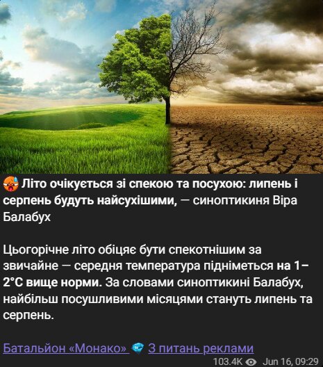Для України очікуваний посушливий період може вплинути на сільське господарство, збільшити ризик лісових пожеж та створити додаткове навантаження на енергетичну та водну інфраструктуру.