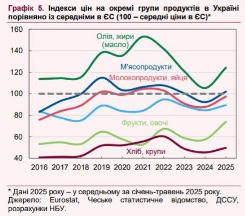 Согласно данным, опубликованным в отчете об инфляции Национального банка Украины (НБУ) за июль 2025 года, наблюдается тревожная тенденция: цены на основные продукты питания в Украине все больше соответствуют ценам в Европейском Союзе или превышают их, несмотря на значительную разницу в доходах.