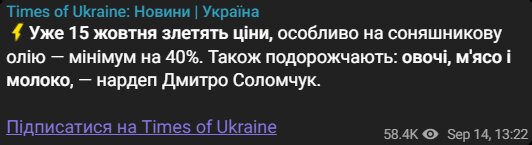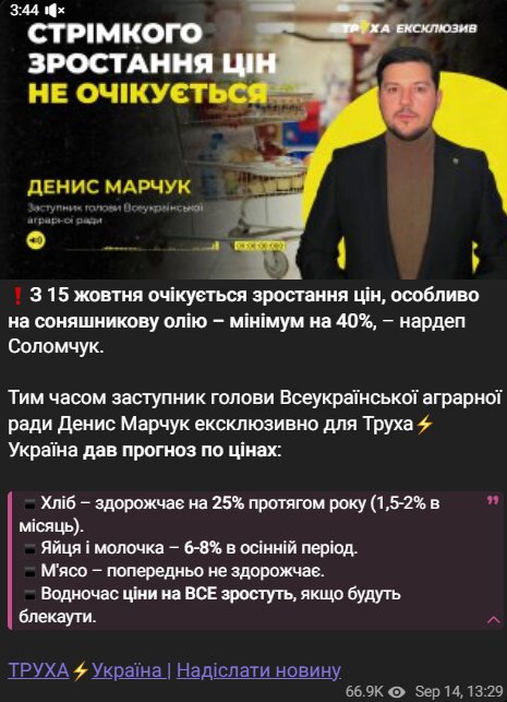 С 15 октября украинцам стоит готовиться к резкому росту цен на продукты питания. Наиболее заметный скачок ожидается на подсолнечное масло — прогнозы предполагают рост не менее чем на 40%, как предупредил нардеп Дмитрий Соломчук.