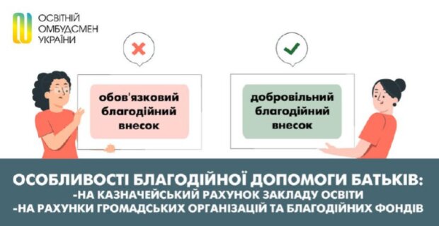 Родители в Украине не обязаны по закону вносить средства в фонды школ или классов, хотя и свободны делать это по своему усмотрению, заявила образовательный омбудсмен Надежда Лещик.